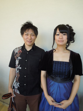 結婚式前に旦那様とパシャリ!右サイド~後ろにかけて編み込みを施したサイドアップです。